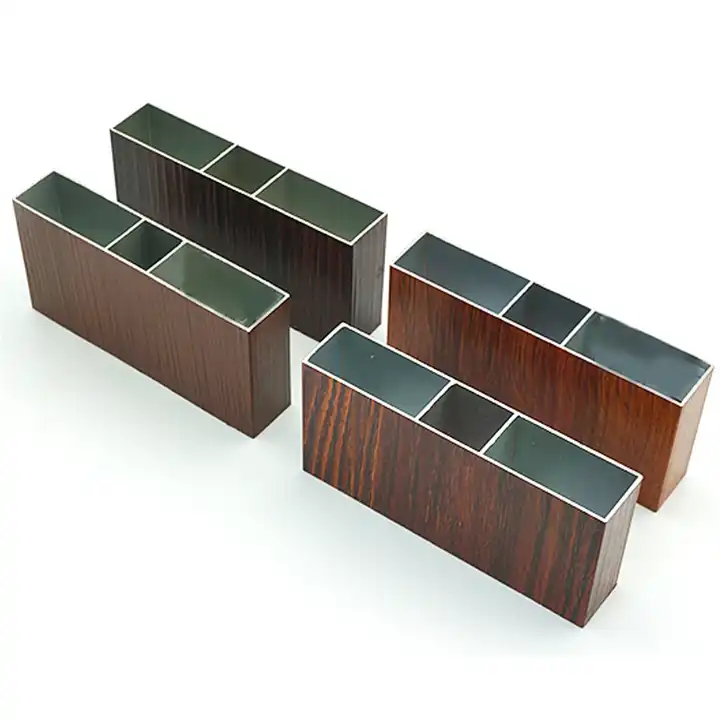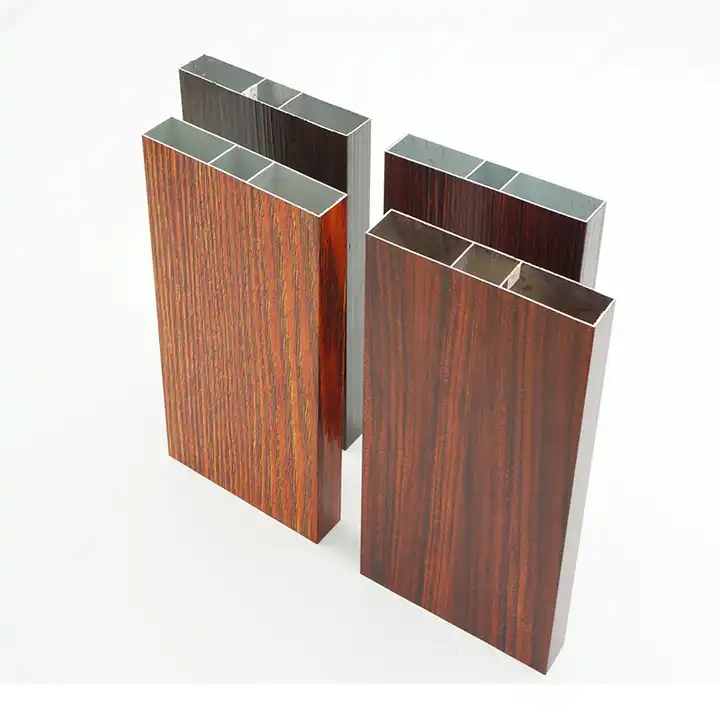 Royen 6063 Wood Grain Extrusion Aluminum Profiles Custom Powder Coated Color Outdoor Durable Wooden Grain Rectangular Panels