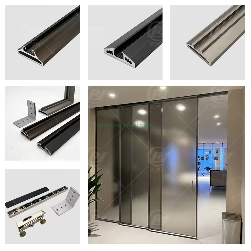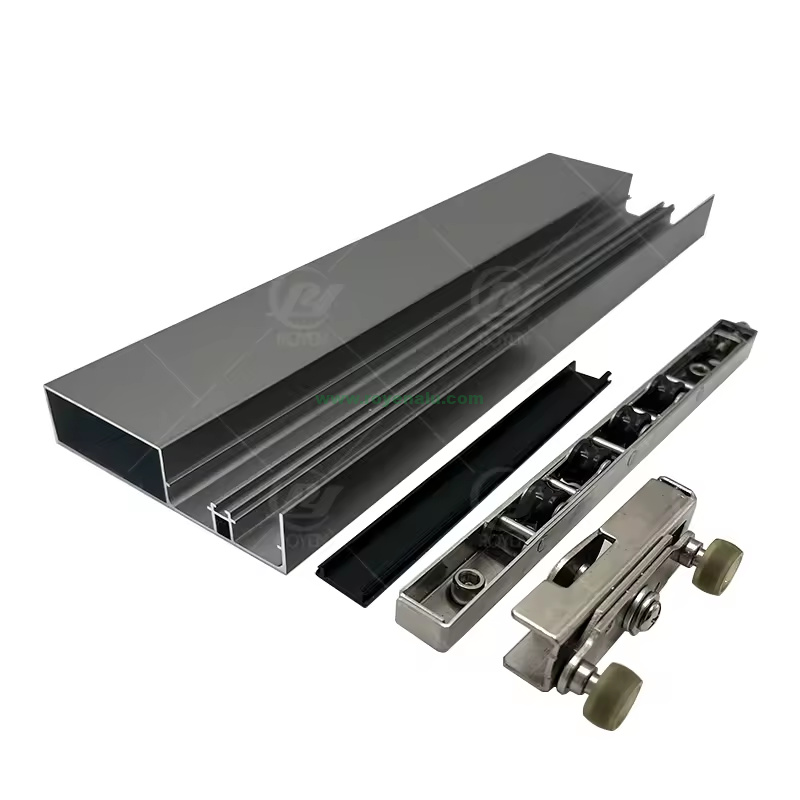 2.The top rail install inside the ceiling or fixed in the wall surface? Aluminum profile Sliding door profile Slim Frame Patio Glass Door Hanger door profile