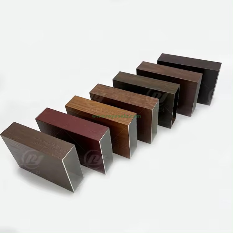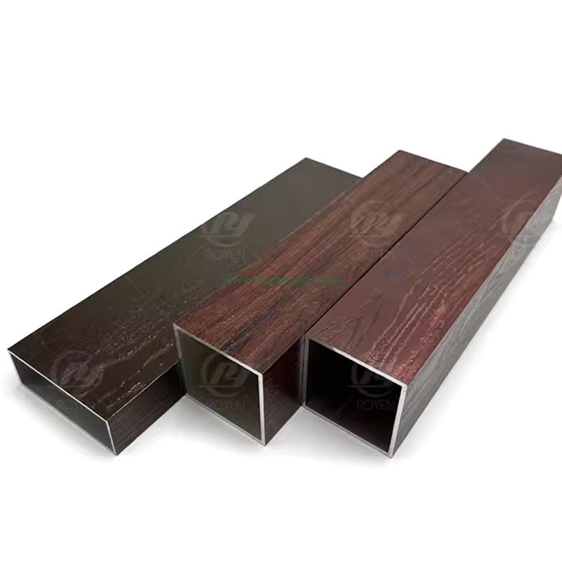 Royen 6063 Aluminum Burned Wood Grain Profiles 4D Square Tubes Pipes For Outdoor Decoration Window and Doors Materials