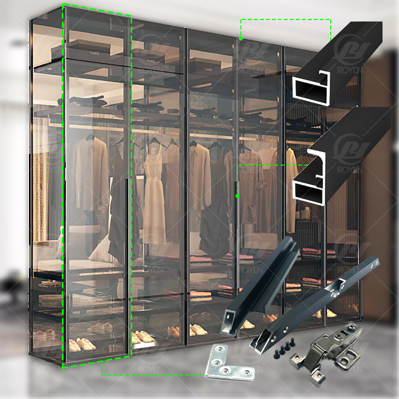 Luxury Glass Cabinet Wardrobe Aluminum Door Profiles Frame Handle For Home Display Case Kitchen Cabinets