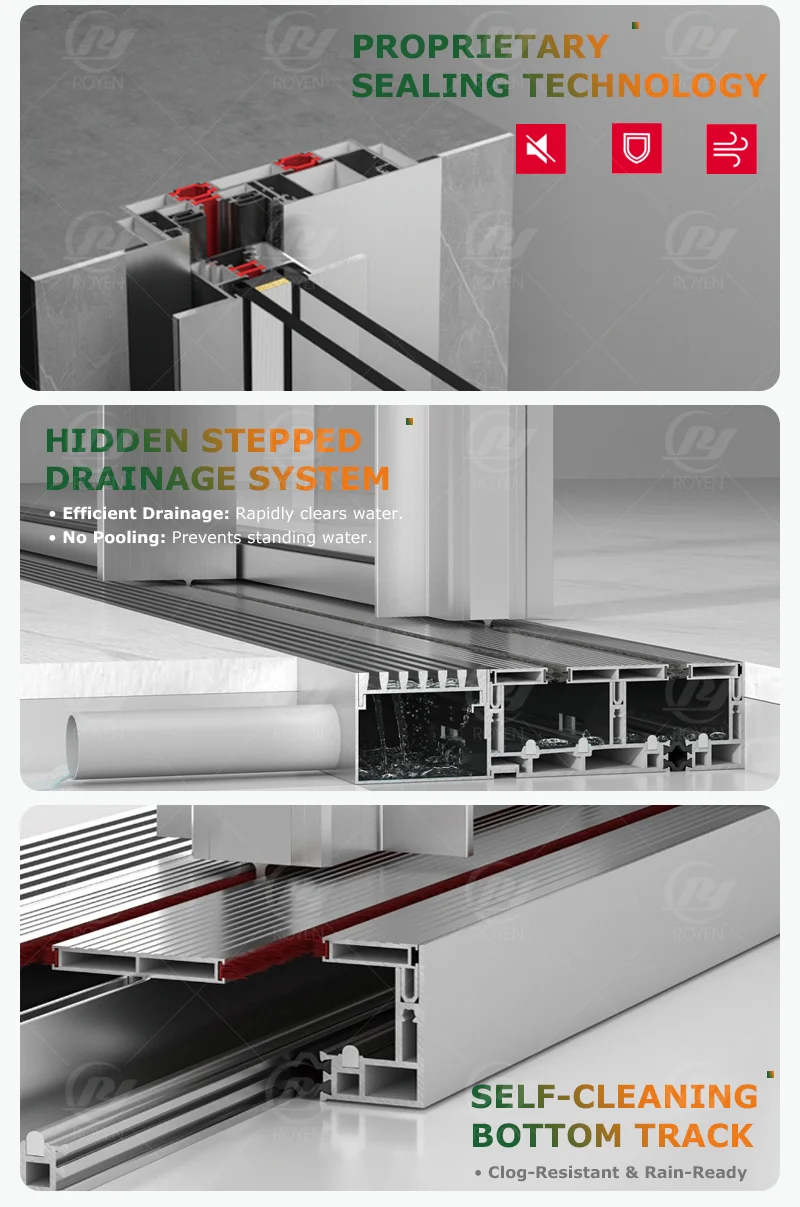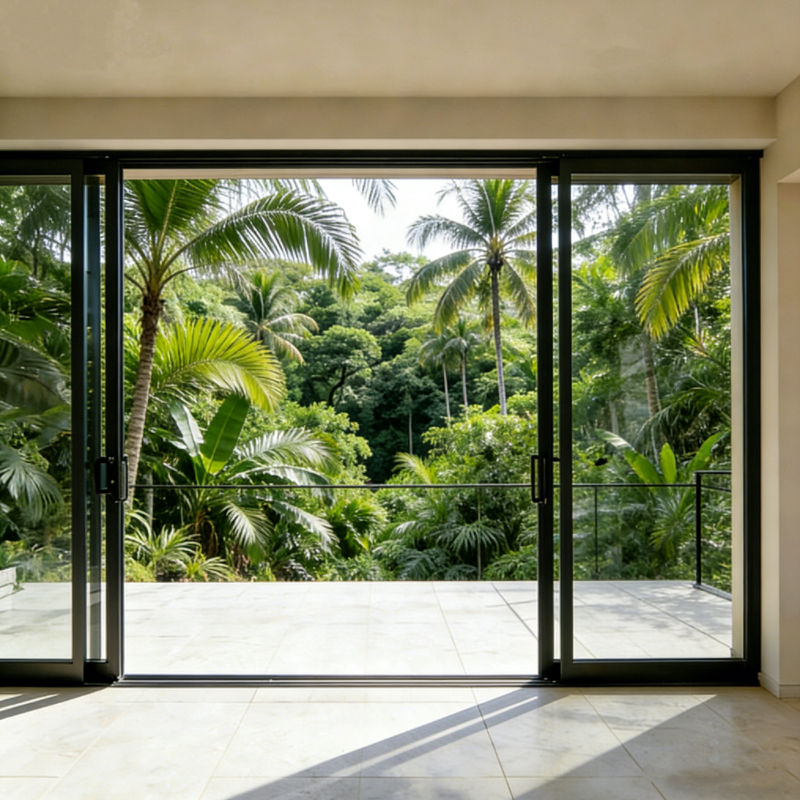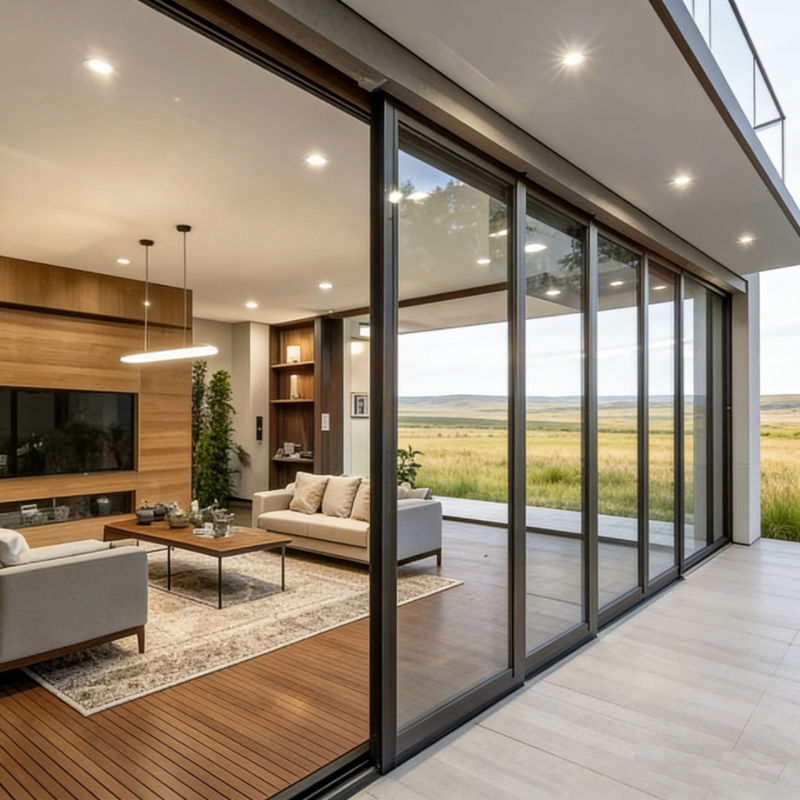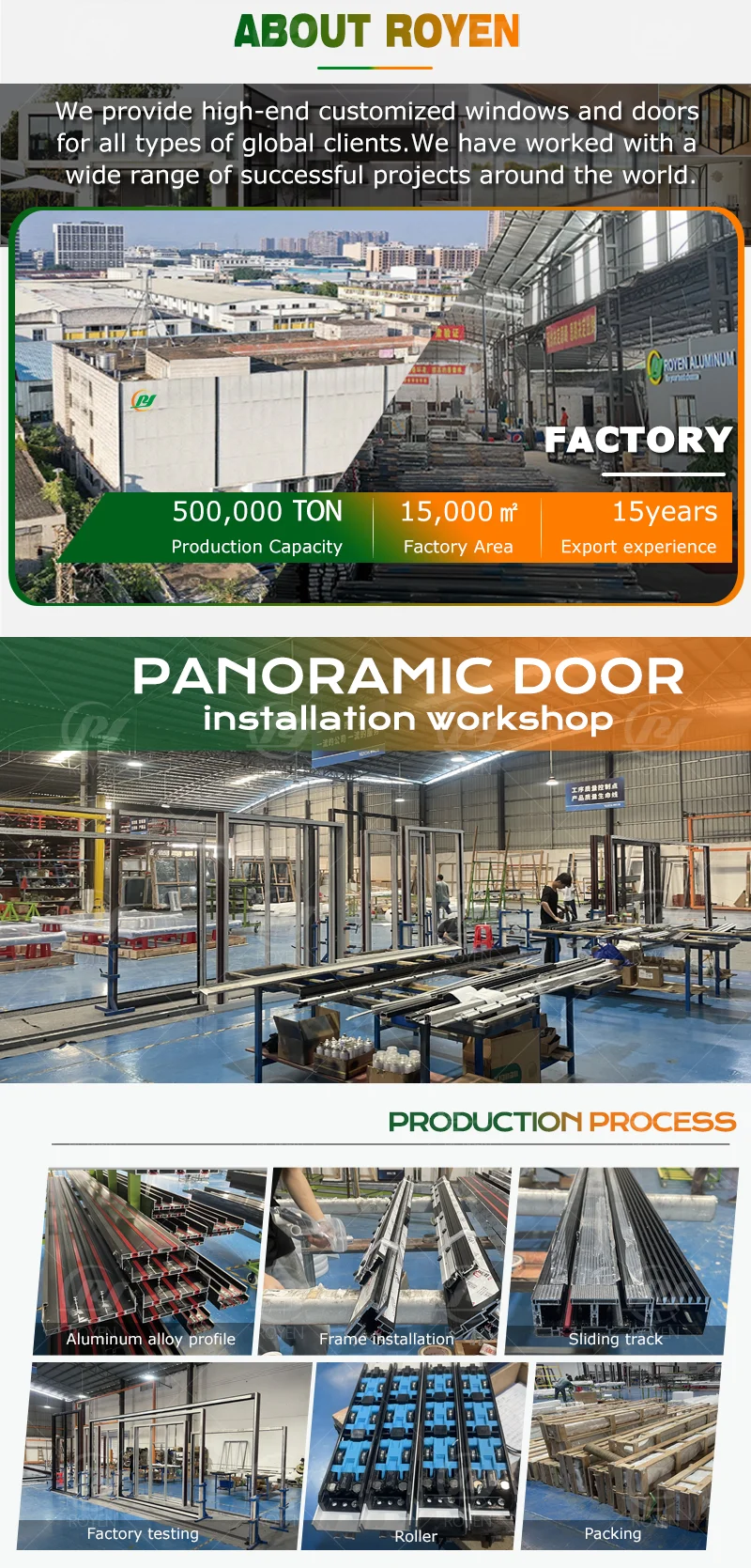 Modern Ultra-Slim Thermally Broken Panoramic Doors Frameless Double Glazed Tempered Glass 6063 Aluminum for Luxury Buildings